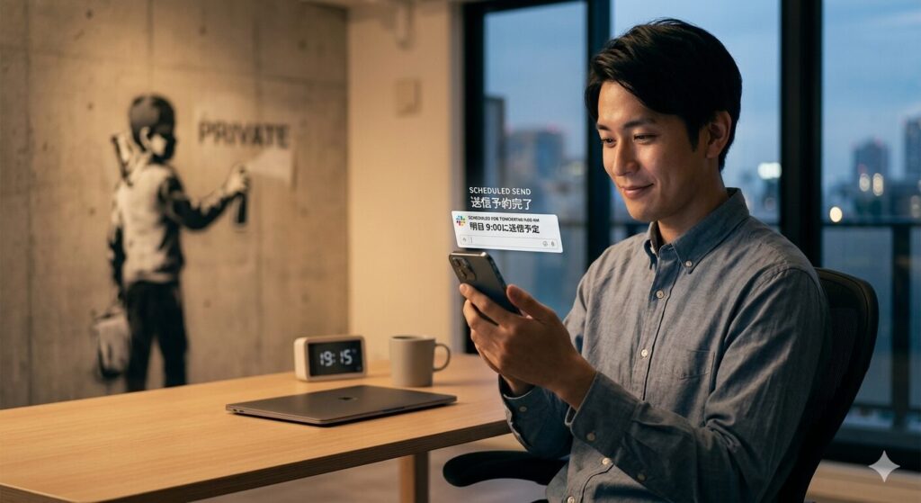 2. 反応しない勇気: 優先順位をつけないと仕事に終わりはありません。緊急性の低い連絡には、翌営業日に返信することを自分のルールにします。メールの予約送信機能を活用し、深夜や休日に思いついた仕事の連絡を、あえてその場で送らず、翌営業日の始業時間に予約送信します。これにより、相手に休日に連絡しても良いという誤解を与えず、連鎖的な反応を防げます。